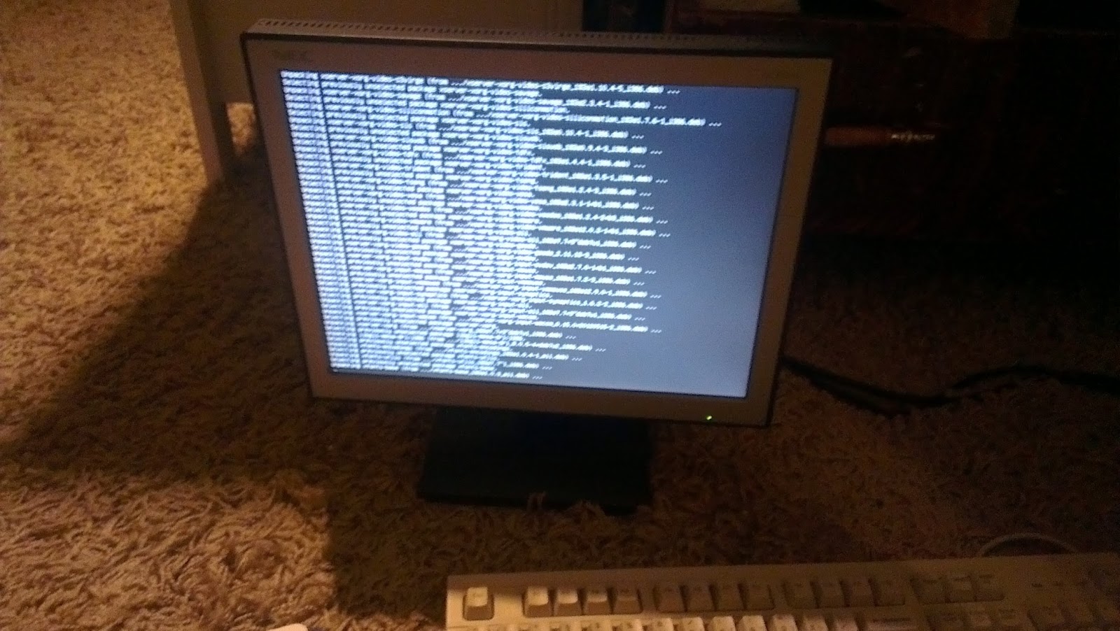 Endlich war es soweit. Ich konnte die funktionierende Festplatte einbauen und wieder: Booten, erst die CD ausführen lassen, dann die Installation. Anscheinend hat auch das CD-ROM-Laufwerk so seine Macken denn erst beim zehnten Mal Starten wurde die Installation beinahe vollständig durchlaufen, ohne dass irgendwo ein Fehler auftrat. An einer Stelle hakte es, aber die übersprang ich einfach Mal testweise. Als der PC dann erneut startete, hatte es zwar irgendwie funktioniert, allerdings öffnete sich nicht der gewünschte xfce-Desktop, sondern lediglich das tty1 Terminal. Ich WILL aber bunt! Neuer Tag, neues Admin-Notfallgespräch. Gegen Feierabend schickte er mir den erlösenden Link zu und erklärte mir Schritt für Schritt, wie ich meine Probleme beseitigen könne. Wenn das immer so einfach wäre.