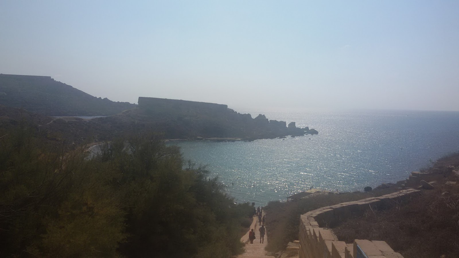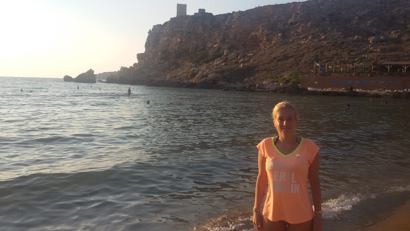 The next day was supposed to be my first day of work (and the day of my relocation) so at 7.30 someone came to pick me up and he also handed me a letter which said: There is some problems with your company you will not start today but tomorrow and we will proceed some information to you later. A little bit surprised I realized I had another day off to spend in the sun. But first I talked to my really nice new flatmates. They then had to leave for their first day of work I went to the grocery store which was super awesome as it was a nice mix of all the cuisines I like: Italian, English, Indian. I stayed there for like an hour to look through all the different kinds of things. Most things are not too expensive anyhow fruits and vegetables are quite expensive which is kind of obvious. After the supermarket I relaxed a little and then went out for a little hike which didnt work out really well because the map I have is not detailed enough and you cant really walk along the streets between cities because there is no pedestrian way or whatsoever. So I took another bus and then walked around in Mgarr [mdjarr], went to a beach, then went to another beach where I wanted to meet the couchsurfer again. The beach was quite nice – you had to go down quite a lot of steps and that was why there were not soo many people and nearly no little children. You were surrounded by cliffs – the only problem was that I was alone at first and that I already was completely sunburned so I asked an italian couple to watch out for my stuff for some minutes and went into the really warm water for a while.