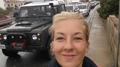 When I went there I saw her from far walking towards another direction. So I followed her and starting from then we went together to Mosta Technopark another stop where usually traffic is not that bad. But not this day. The traffic jam continued, cars barely moving. She decided to walk the whole way to work and as we were a lot faster than all the cars standing there I joined her because I could have still gotten in a bus when we would have seen one. Walking was really funny and kind of adventurous as there were no sidewalks and the rain left big wet spots everywhere. The other road direction was empty so whenever a car passed the chance of getting completely wet was pretty high. We made our way through the cars which was save because they were standing. After maybe 50 minutes Esmee had to walk towards a different direction so we said „goodbye“ and „good luck“ and I decided to go on walking – without knowing the way but I was sure I will figure it out. By that time I already called my company to tell them not to worry about me and that I will be there but like really late. So at least I didn’t have to hurry. After a total of 2 hours (including all the waiting in the beginning) I finally arrived at work.