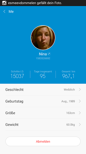 Oh, I also just saw the profile screen from my step counting app which is linked to a step counting and sleep tracking bracelet and I recognized that I am so close to reach my first 1,000 kilometers within less than 100 days. Nice one – Nina.
