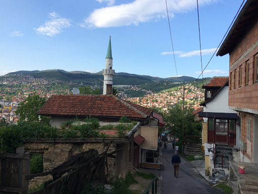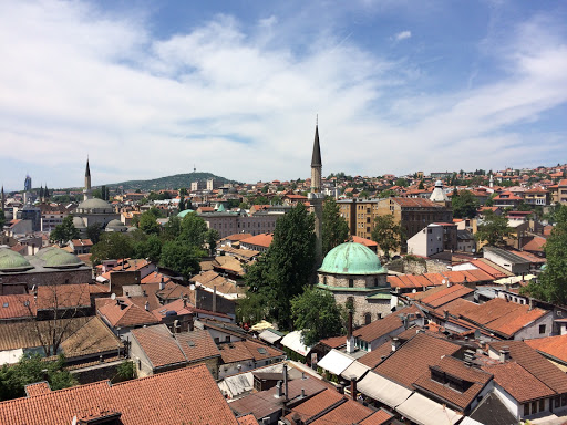 Nach 2,5 Stunden fuhren wir in Sarajevo ein. Wie so oft in östlicheren Gefilden, kamen wir zunächst an riesigen Plattenbaukomplexen vorbei, die sich neben uns auftürmten. Der Busbahnhof lag dann noch ein Stück vor der Innenstadt, dennoch wollte ich gerne laufen. Nach einer halben Stunde und nachdem ich wohl an allem wichtigen Wahrzeichen vorbeigelaufen bin kam ich in meinem luxuriösen AirBnB Apartment an. Für eine Nacht wollte ich mir ein Zimmer nur für mich gönnen und das war wirklich ein Traum. Fadil, der Apartmentbesitzer öffnete mir die Tür und begrüßte mich freundlich. Noch bevor er mir mein Zimmer zeigte, brachte er mich zur Dachterrasse, die einen Blick über die ganze Stadt ermöglichte und schon da plante ich spätestens zum Sonnenuntergang wieder in der Unterkunft zu sein.