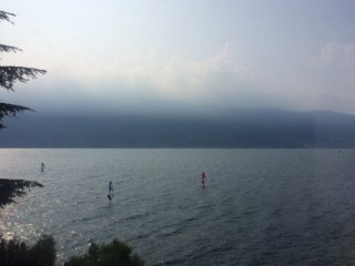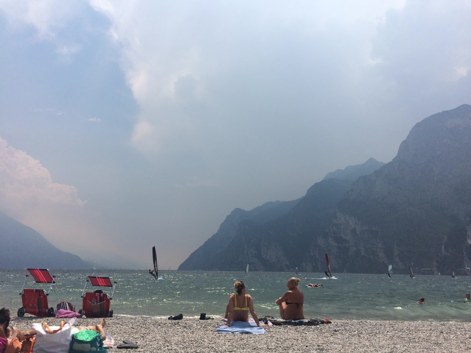 Da ich vor dem doch recht anstrengenden Aufstieg zu dem Apartment nicht ausreichend eingekauft hatte, musste ich wohl oder übel noch einmal hinunter, um mir Verpflegung zu holen und eventuell noch ein paar Stunden im Wasser zu gönnen. Dabei besichtigte ich auf dem Weg eine schöne kleine Kirche mit einem noch schöneren Ausblick und einen sehr leckeren Eisladen. Inmitten fast ausschließlich italienischen Familien (die Touris warteten dann alle in Riva del Garda) vergnügte ich mich noch ein – zwei Stunden am Strand und kaufte mir später mein Abendessen. So endete mein Tag nach dem erneuten Erklimmen des Weges zum Apartment recht ruhig und früh, da ich auch am nächsten Morgen wieder früh raus wollte, um den ersten Bus zu erwischen und der extremen Hitze zu entgehen.Die Fahrt war mal wieder atemberaubend, die ganze Zeit am Gardasee entlang, hatte ich einfach einen fantastischen Ausblick. An einigen Stellen häuften sich die Kitesurfer zu hunderten, was einen unglaublichen Anblick ermöglichte, die vielen bunten Segel gaben einfach ein zu schönes Bild ab, was auch gut davon ablenkte, dass mir der Italiener neben mir immer näher auf die Pelle rückte.