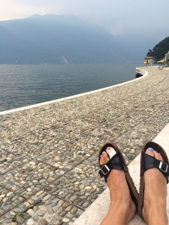 In Toscolano angekommen, wollte ich eigentlich nur eine kurze Runde durch das Städtchen laufen und dann erstmal den bergigen Weg zu meinem nächsten AirBnB besteigen, als ich allerdings am Strand vorbeilief und realisierte, dass es um 9 Uhr morgens bereits mehr als 30 Grad warm war entschied ich dann doch, erstmal ein wenig Abkühlung zu genießen bevor es weiterging. Diese Abkühlung dauerte dann bis ca 13 Uhr an, es war einfach zu schön und erholsam für meine bereits vom Vortag geschundenen Füße. Das Wasser war angenehm kühl, kristallklar und mit einem Ebook(reader) in der Hand konnte ich nichts tun, außer einfach mal zu entspannen. Irgendwann war es dann doch an der Zeit zu meinem AirBnB zu ziehen, der Weg dahin erwies sich auch als noch anstrengender als erwartet, Bergauf, eine Straße entlang in der Mittagshitze, ich hatte mal wieder super mitgedacht.
