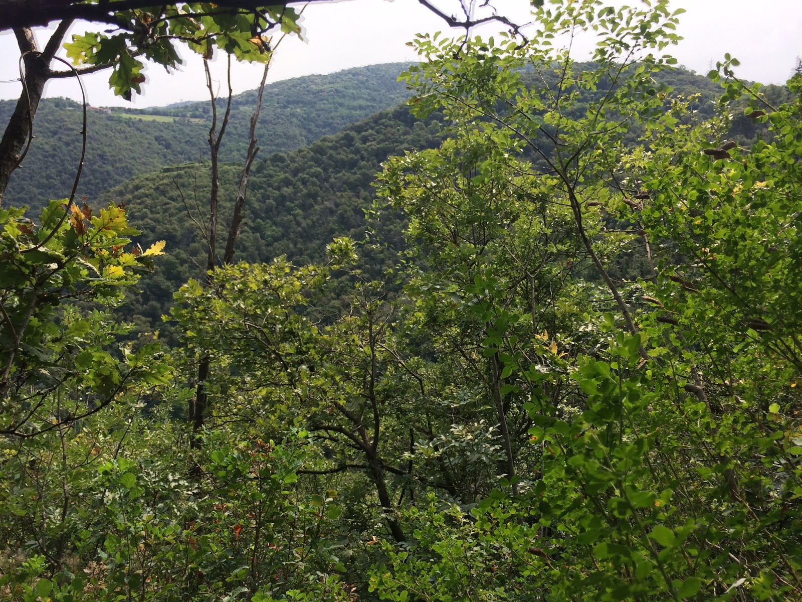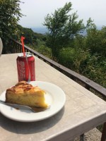 Dort wurde ich mit einer wundervollen Aussicht, kalter Cola und Apfelkuchen für meine Mühen belohnt. Die Kellnerin war sehr nett, glaube ich zumindest, verstanden habe ich sie natürlich nicht. Mit weiteren 2 Wasserflaschen bestückt konnte ich meine Wanderung nun fortsetzen. Die ursprünglich geplanten 35-40km schienen unrealistischer denn je, es war einfach zu heiß und zu bergig, daher entschied ich weitere 10 km später, den Weg zurück nicht noch mal über Berg und Tal zu klettern, sondern mich schön außen rum von google- Maps durch die Dörfer navigieren zu lassen.