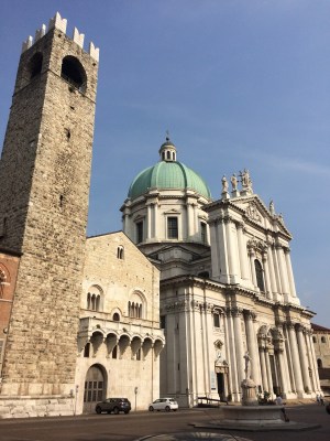 Gegen 18 Uhr erreichte ich wieder Brescia und lief noch ein kleines bisschen durch die süße, überhaupt nicht touristische Stadt, um auch davon noch etwas zu sehen und einen Supermarkt zu finden, der mir mein Abendbrot ermöglichen würde. Wenig später traf ich auf meine Airbnb Gastgeberin- die mich in ihre schöne Wohnung ließ wo ich von 2 riesigen, weniger schönen, dennoch halbwegs zutraulichen Hunden begrüßt wurde. Ich wollte nur noch duschen und schlafen und war wohl wenig kommunikativ, was sich dann auch in ihrer späteren AirBnB- Bewertung über mich niederschlug: “Nina was very quiet and clean.” Naja, wenn das mal jeder über mich sagen würde 🙂 Am nächsten Morgen zog ich wieder sehr früh weiter zum Busbahnhof der Stadt. Leider fanden sich dort keinerlei Hinweise auf den Bus, welchen ich nehmen wollte. Nachdem ich 20 Minuten lang immer wieder hin- und hergelaufen war, schaffte es ein Busfahrer meine Frage nach dem passenden Bus zu verstehen (indem ich “Bus” und “Toscolano Maderno” sagte). Es schien einen weiteren Busbahnhof für regionale Busse zu geben, wenn ich mich beeilen würde, würde es noch hinhauen – und das tat es dann auch. Pünktlich stieg ich um 7:21 in den Bus.
